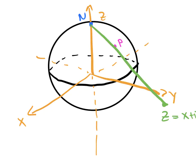 Stereographic ProjectionThese notes follow Yale’s MATH310: Complex Analysis as taught by Prof. Franco Vargas Pallete in Fall 2021. The course follows Complex Analysis by Theodore Gamelin, an undergraduate introduction to the field. The course covered roughly the first 9 chapters of Gamelin’s text touching on functions of comlpex variables, differentiability of complex functions, complex integration, Cauchy’s theorem, series expansions, calculus of residues, and conformal mapping.